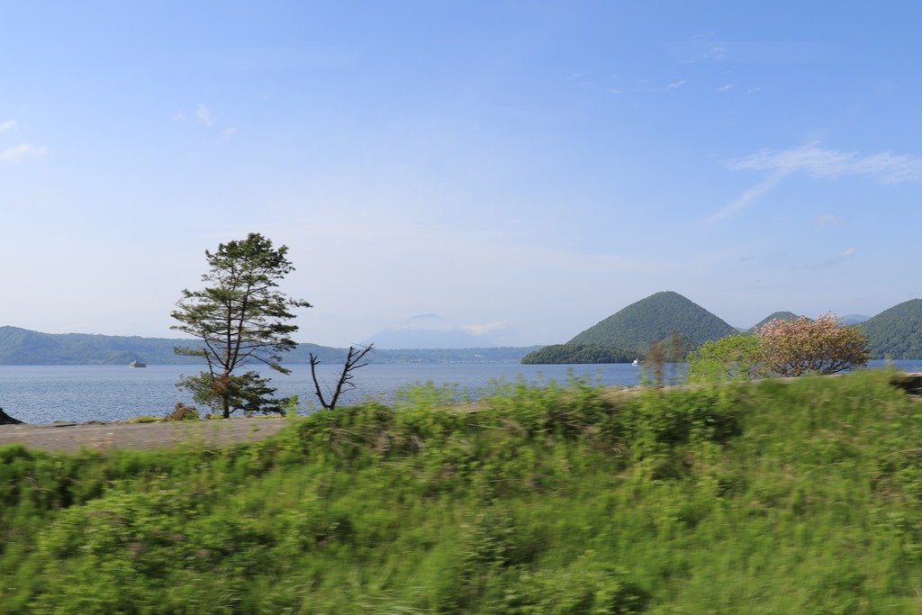 洞爺湖の向こうに羊蹄山(蝦夷富士)が見えています。