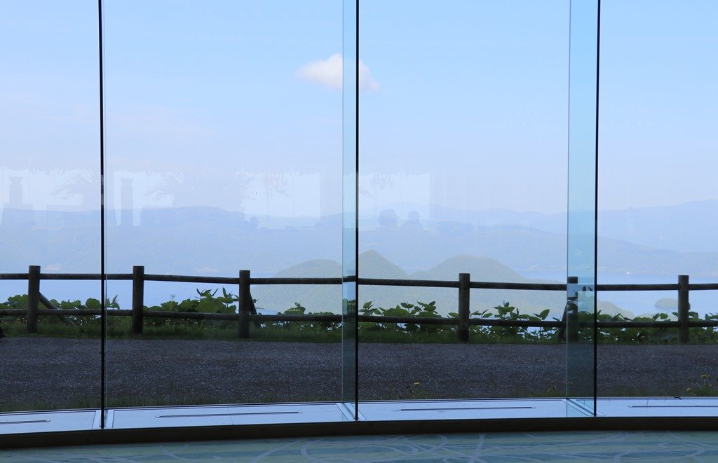 ガラス窓に近づくと洞爺湖と中島が見られました。