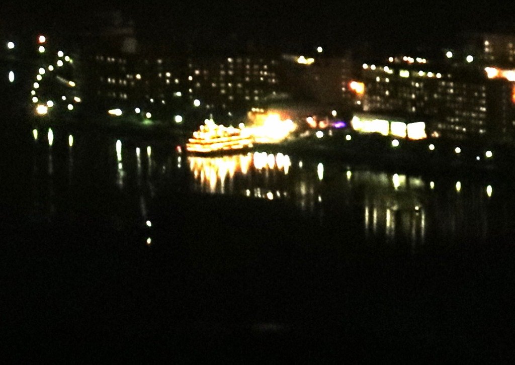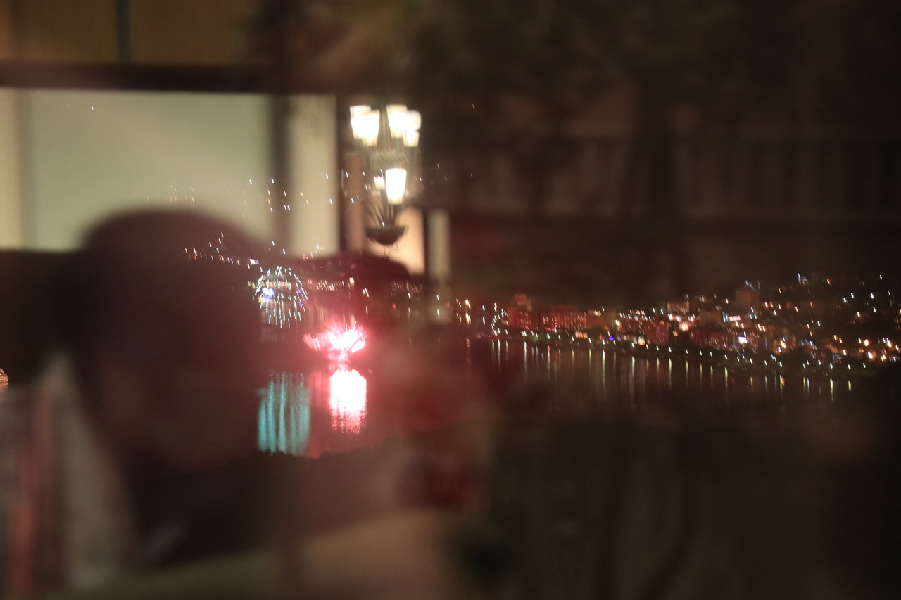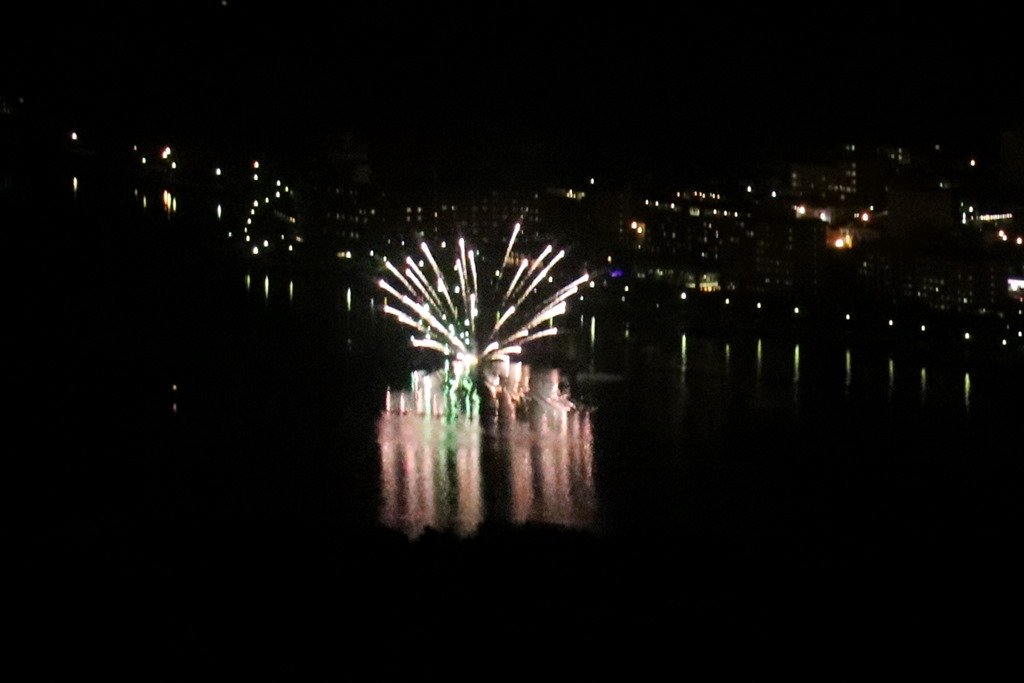 8:45から洞爺湖町で花火が上がると教わり、ホテル内から見られるというガラス張りの廊下へ行きました。
