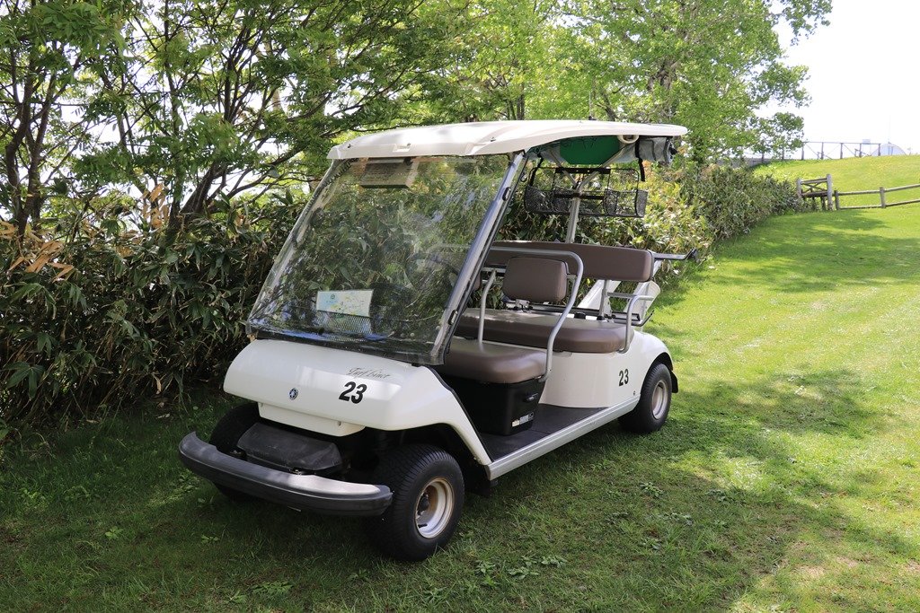 ゴルフ場内を走るガイド付きカート遊覧のカートです。