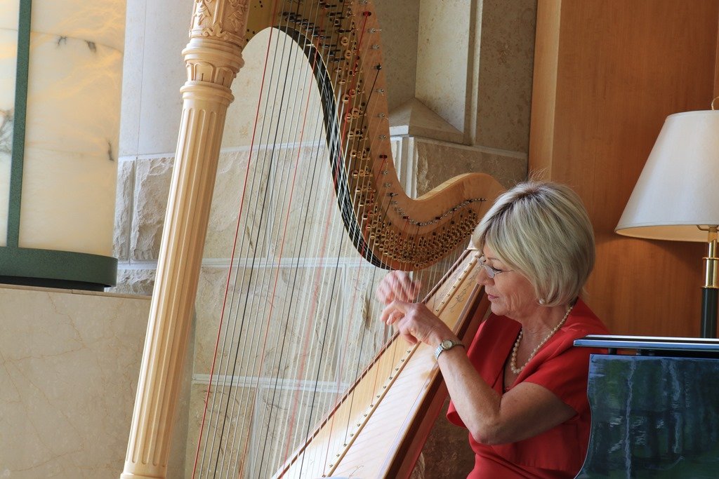 フロントにスーツケースを預けると、ハープの演奏が聞こえてきたのでしばらく聴いていました。