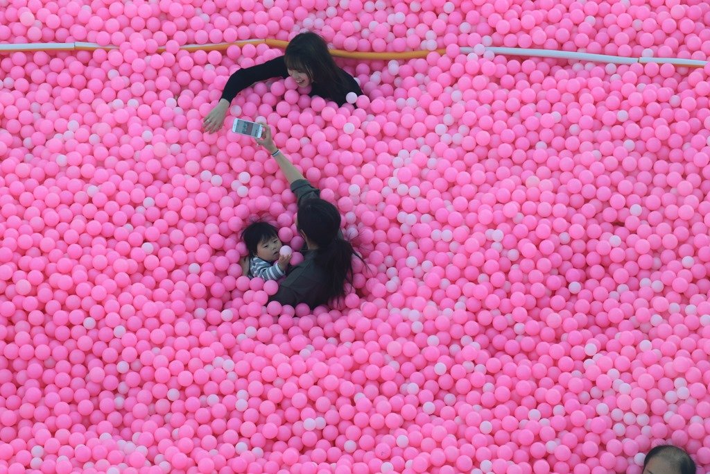 下の階(58F)はイベント会場でピンクに染まっています。