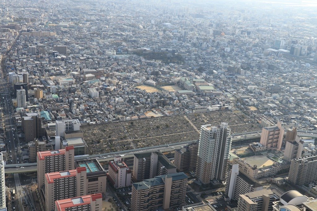 眼下はJR天王寺駅、近鉄あべの駅付近です。