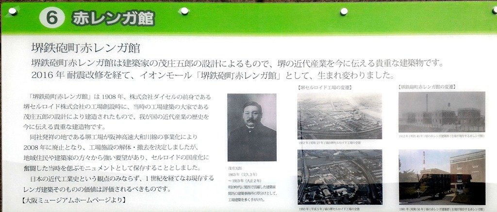 大日本セルロイド堺工場の事務所として使われていたレンガ造りの建物が残されていました。