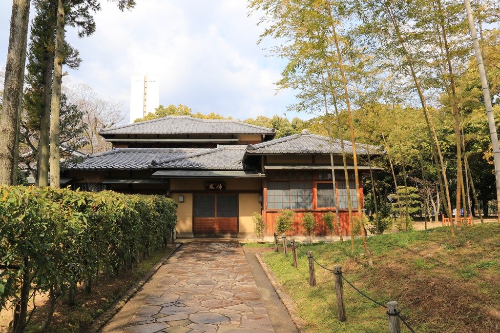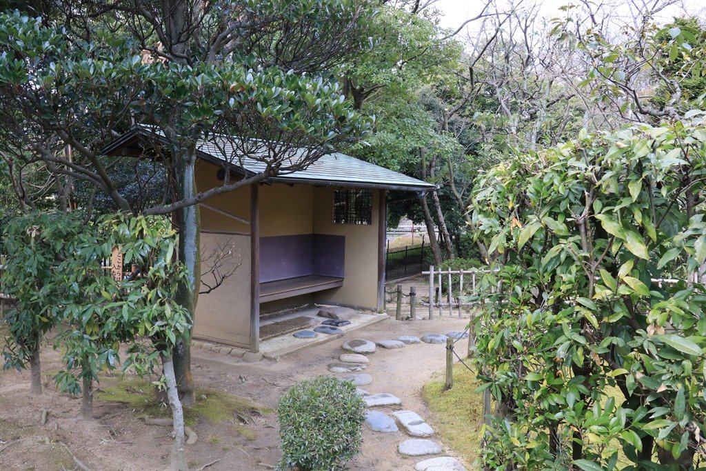 東京芝公園にあった茶室を昭和55年に福助株式会社から寄贈され移築したものです。
