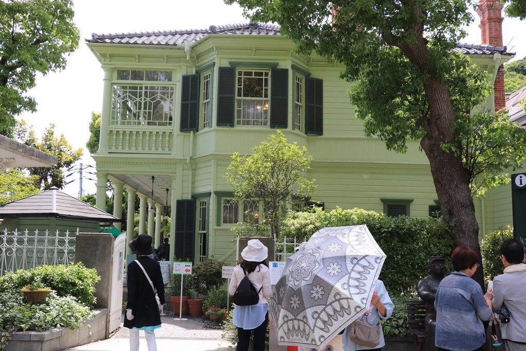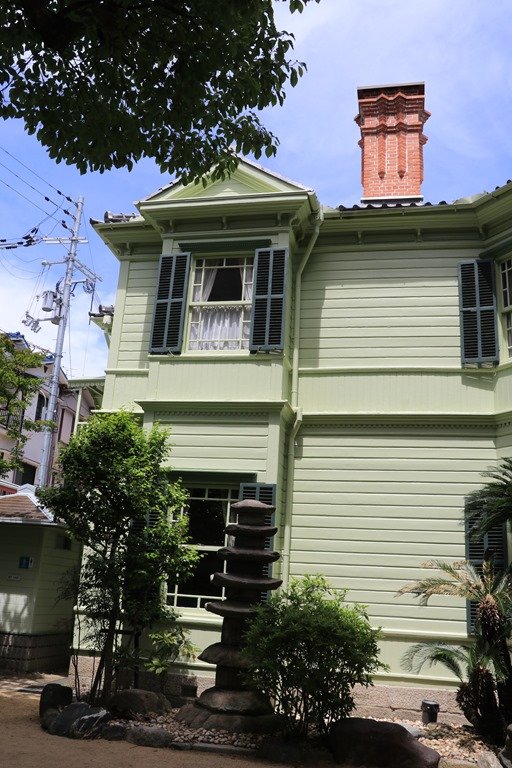 萌黄色に塗られた外壁の異人館はアメリカンスタイルの建物です。