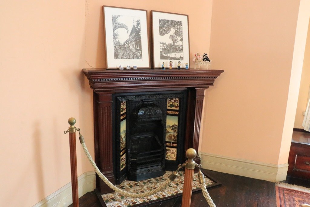 神戸・淡路大震災で暖炉のチムニーが落ちてしまったのです。現在は新しいチムニーが取り付けられています。