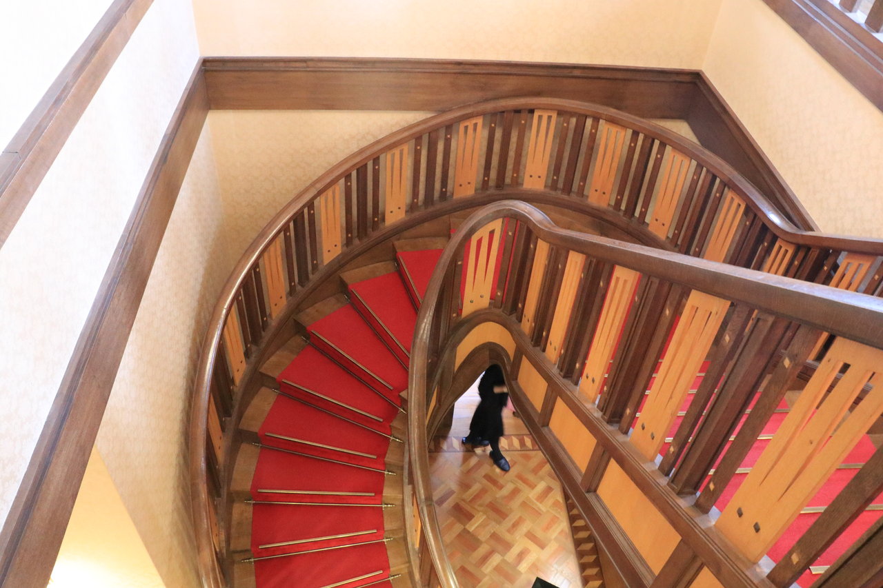 二階から見た螺旋階段です。