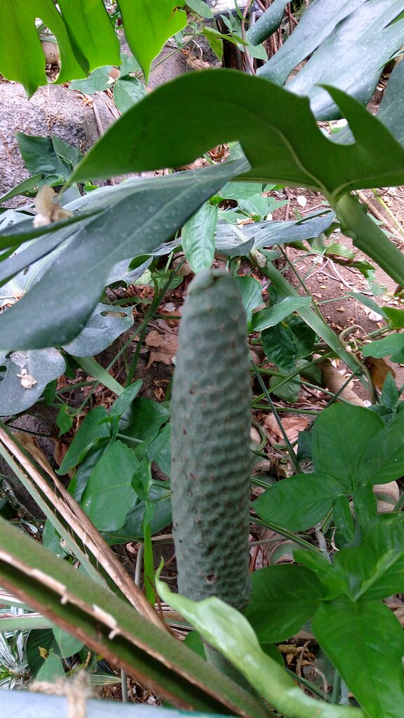 下からにょきにょき出ているのはモンステラの実です。