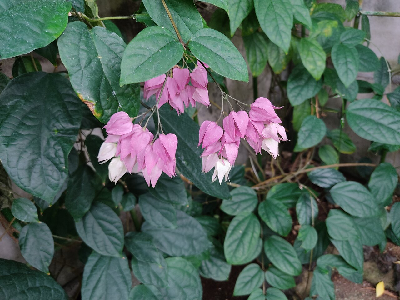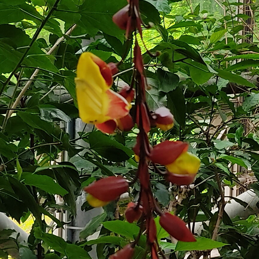 蔓性植物です。紫と白の花が咲いていると思ったらこれは花ではなかったです。