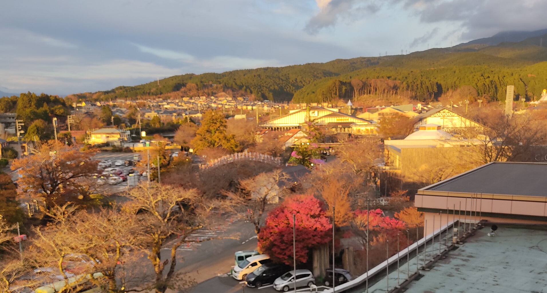 夕焼けに染まる時之栖