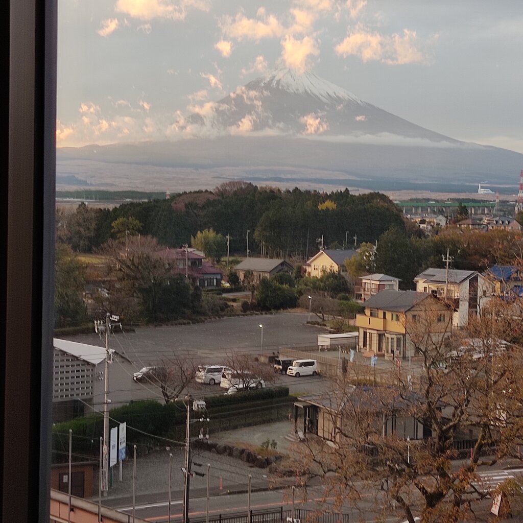 部屋の窓から富士山とイルミネーション会場の一部が見えます。