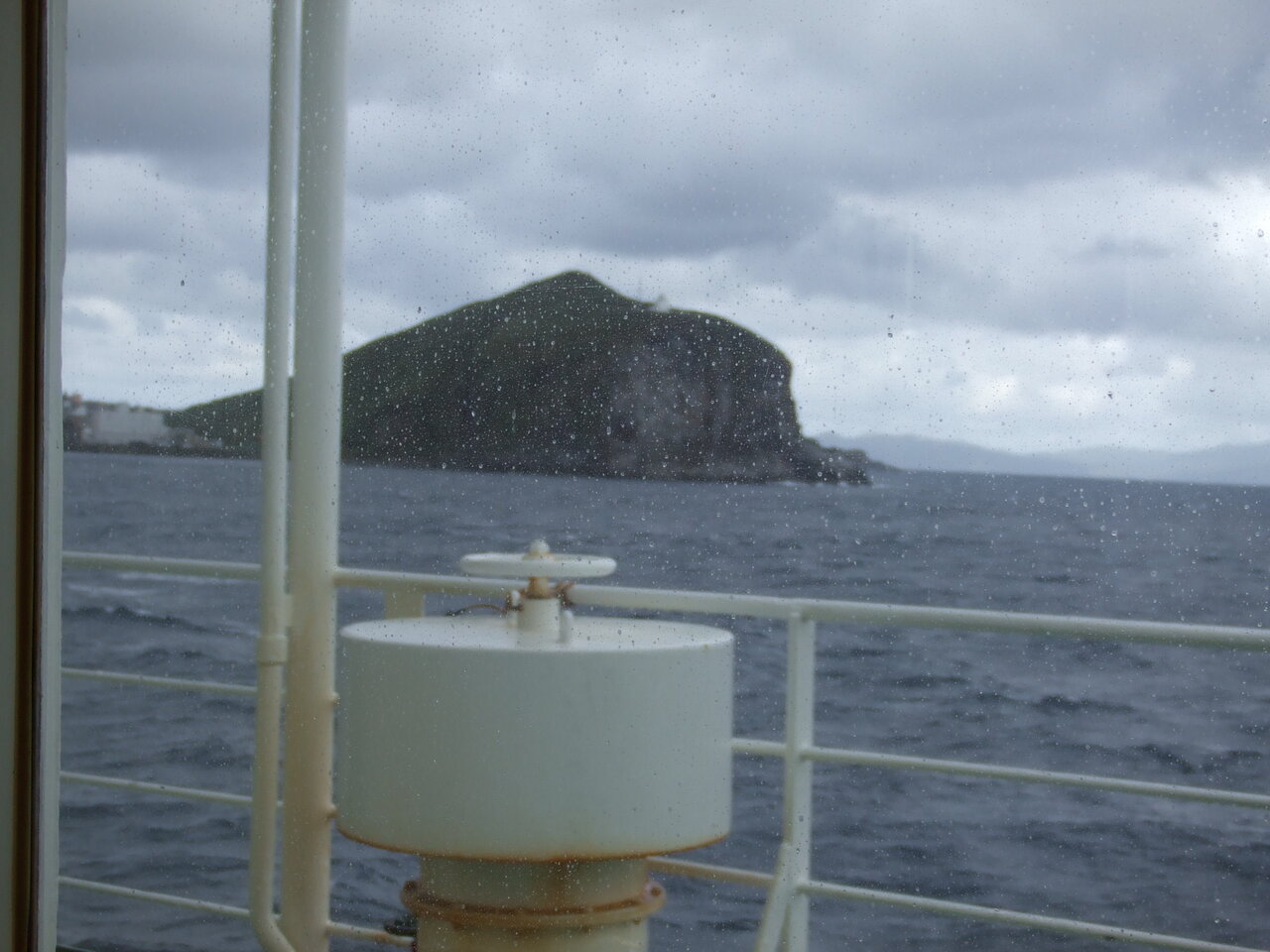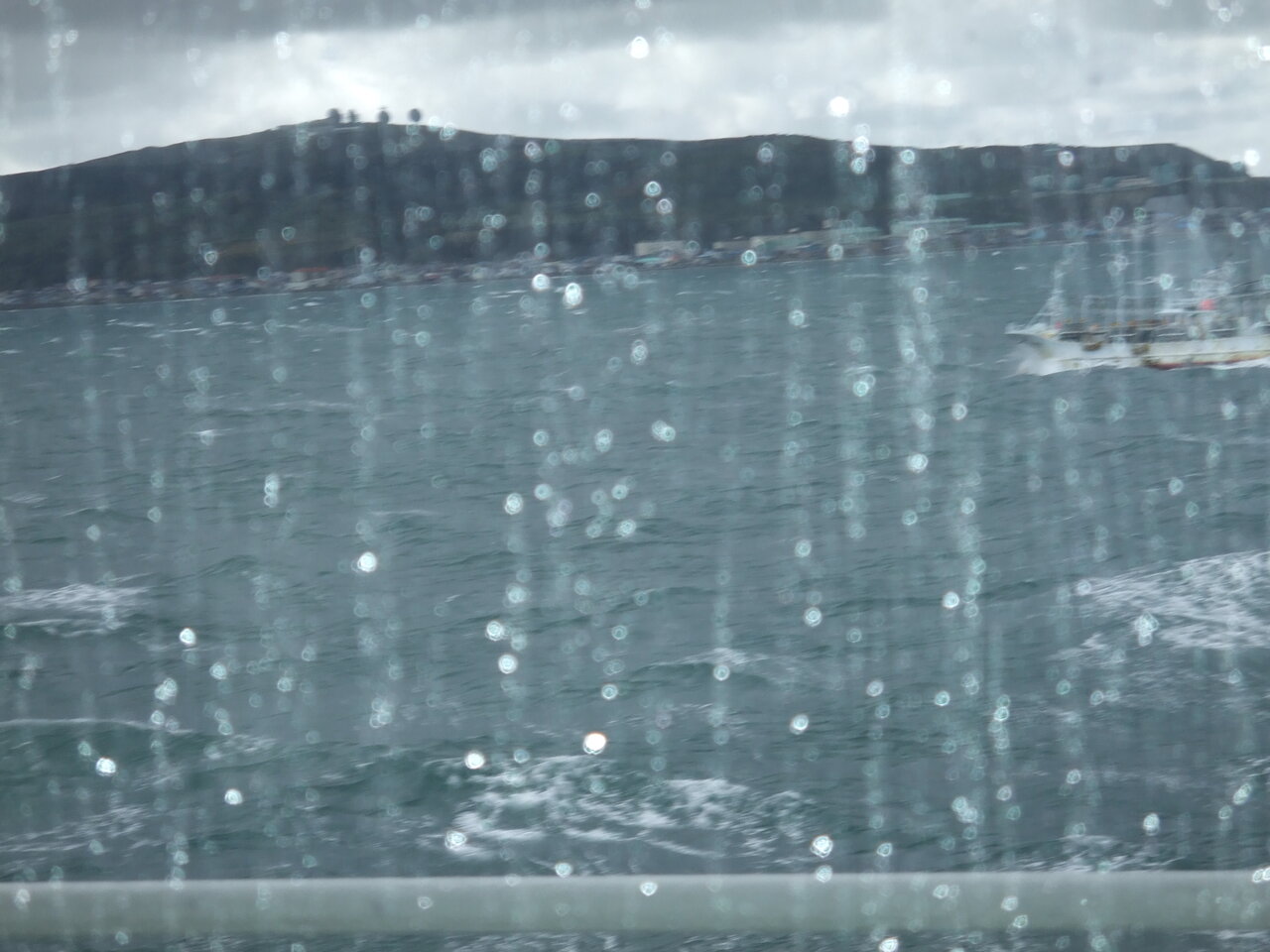 ガラス越しに見えたペシ岬です。雨がかなり強くなってきました。