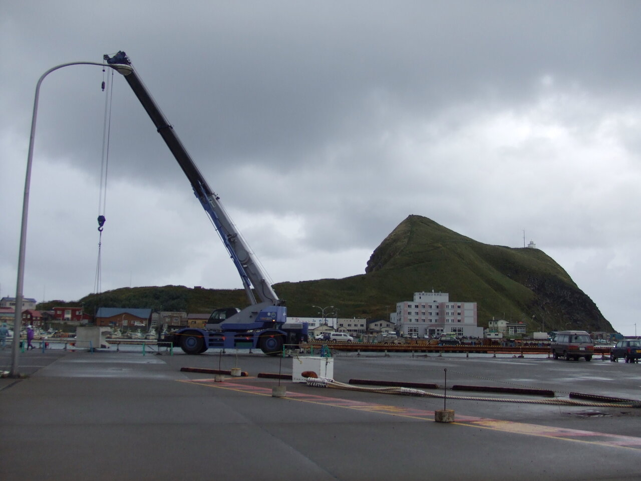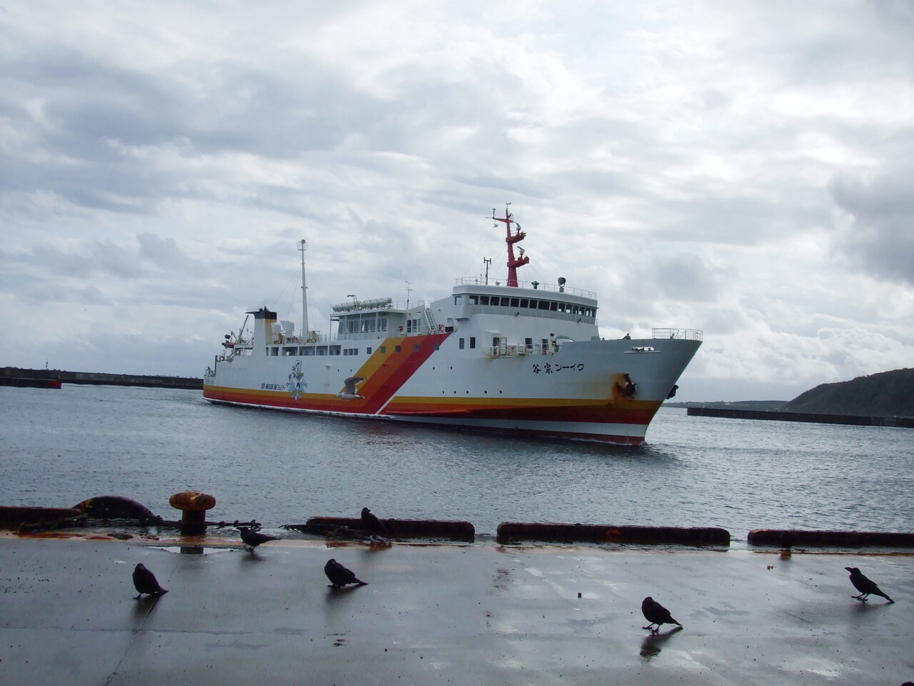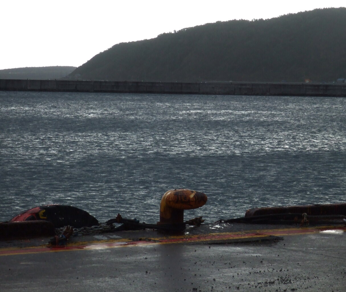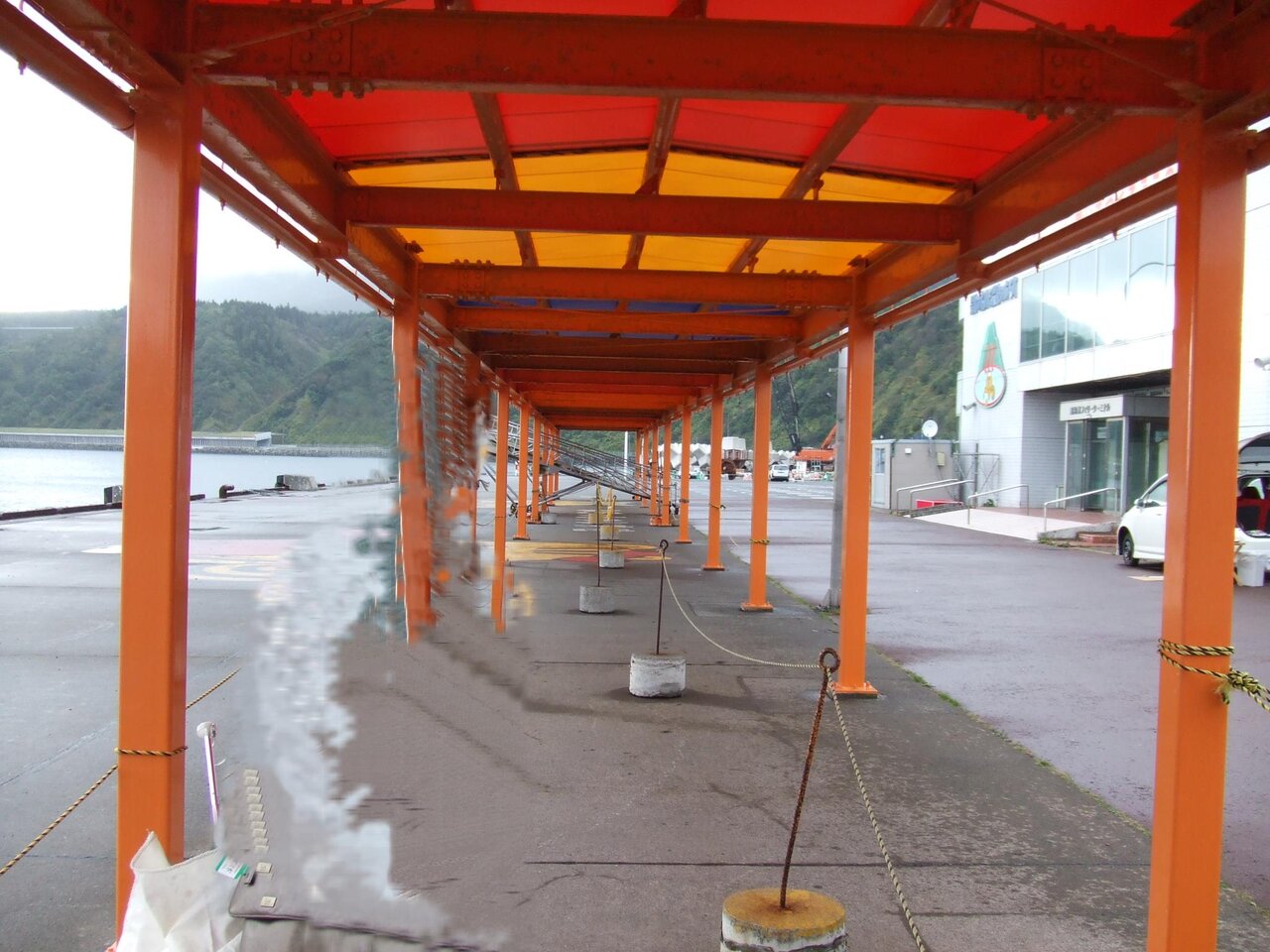 最終日は観光なしでした。羽田、稚内便は午前、午後一便づつで、往き朝便だと帰りも朝便、往き午後便だと帰りも午後便とグループツアーは決めているようでした。お客が偏らないようにしているようです。朝食後フェリーの出発(9:10)まで少し時間があったので桟橋まで散歩に出かけました。ところが、急なにわか雨にあいました。