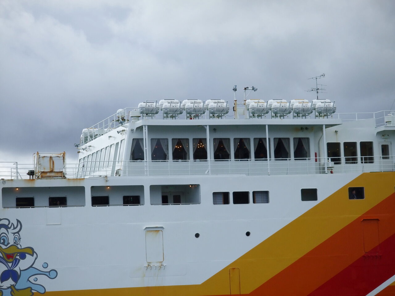 とりあえず、フェリーの発券場へ避難すると添乗員さんがフェリーの特等席希望者のチケット変更のため発売時間に合わせて待機していました。