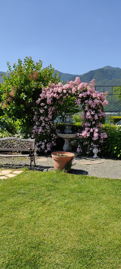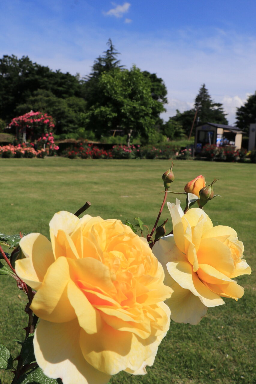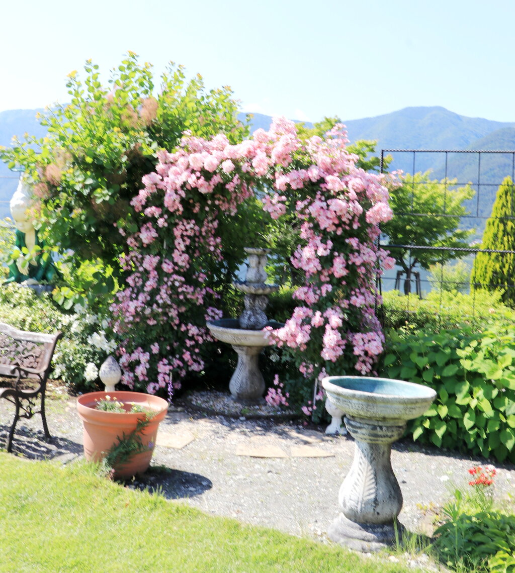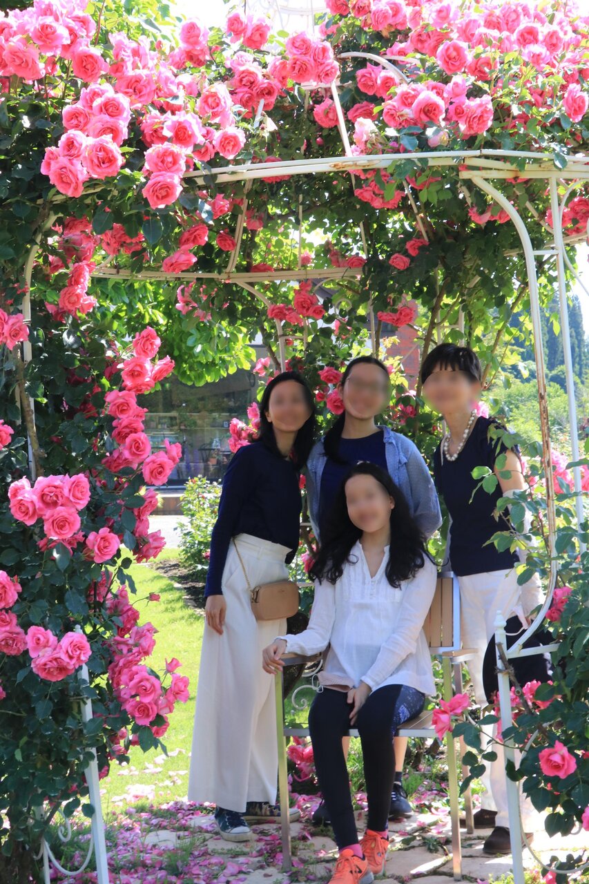 ミューズ館は与勇輝の人形が飾ってある美術館ですが庭にバラが咲いているので美術館に入らず家族で撮影会がはじまりました。