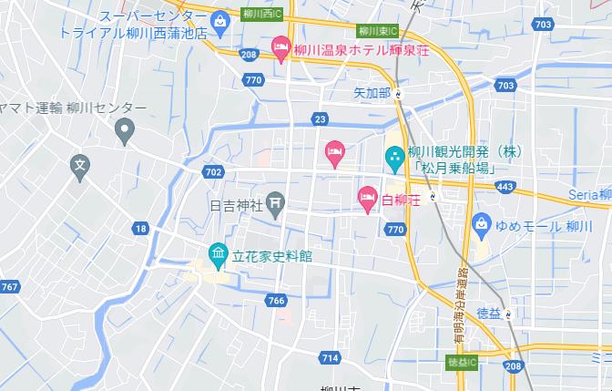 googleマップで柳川を検索すると水路が無数にありました。