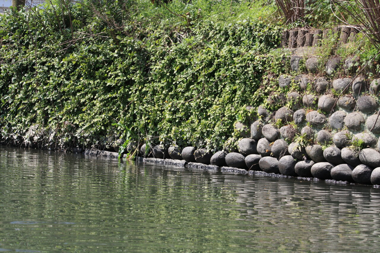 玉石を並べた川堤があるところに出てきました。この辺から柳川風情を感じることが出来ました。