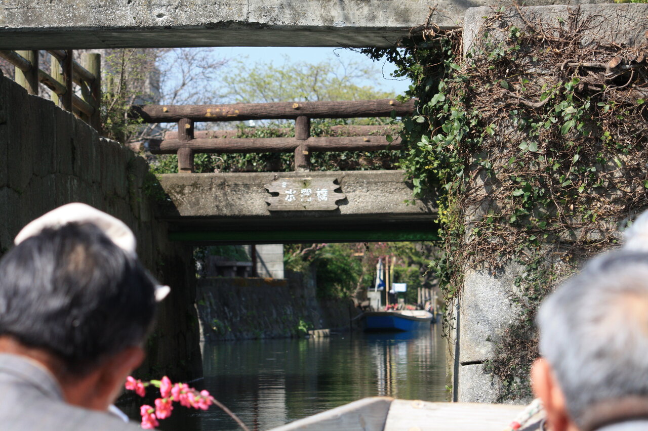 高さも幅も、ぎりぎりのところを通って行きます。橋の名前は「水郷橋」です。