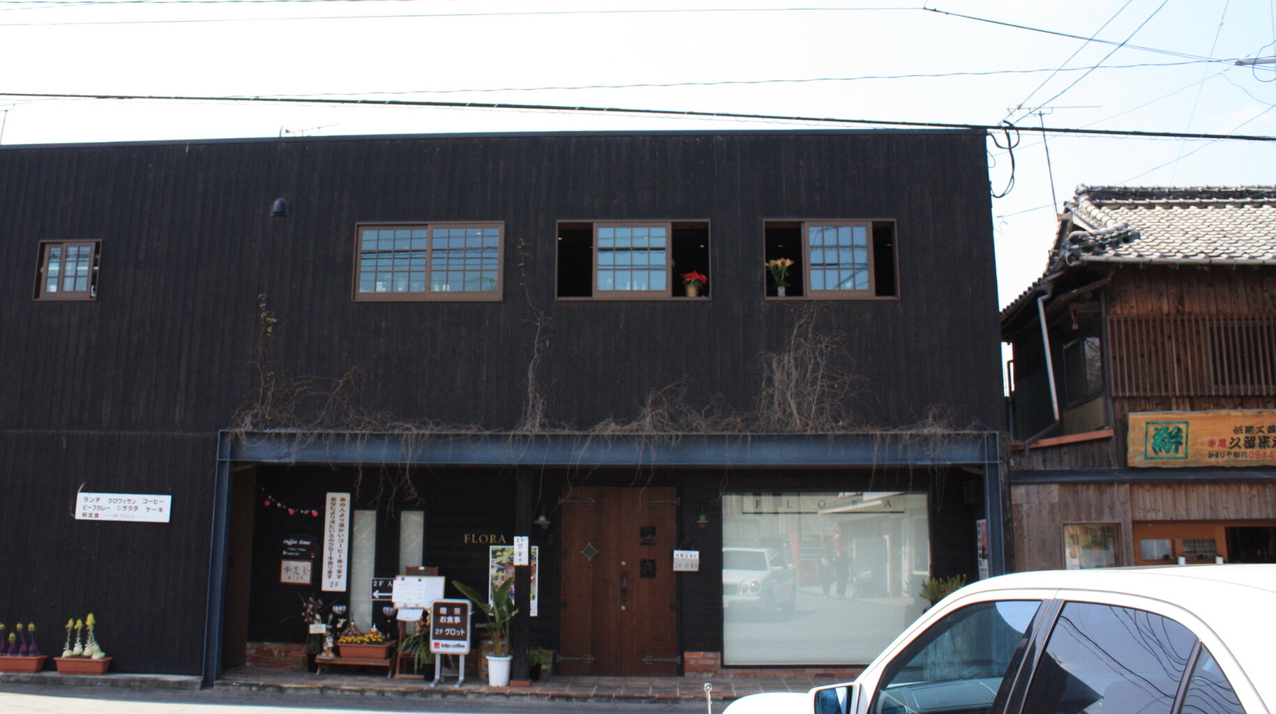 御花ちかくまで戻り、コーヒー付きのビーフカレーがメニューに出ているグロットという店を見つけました。花を飾った窓のある2F です