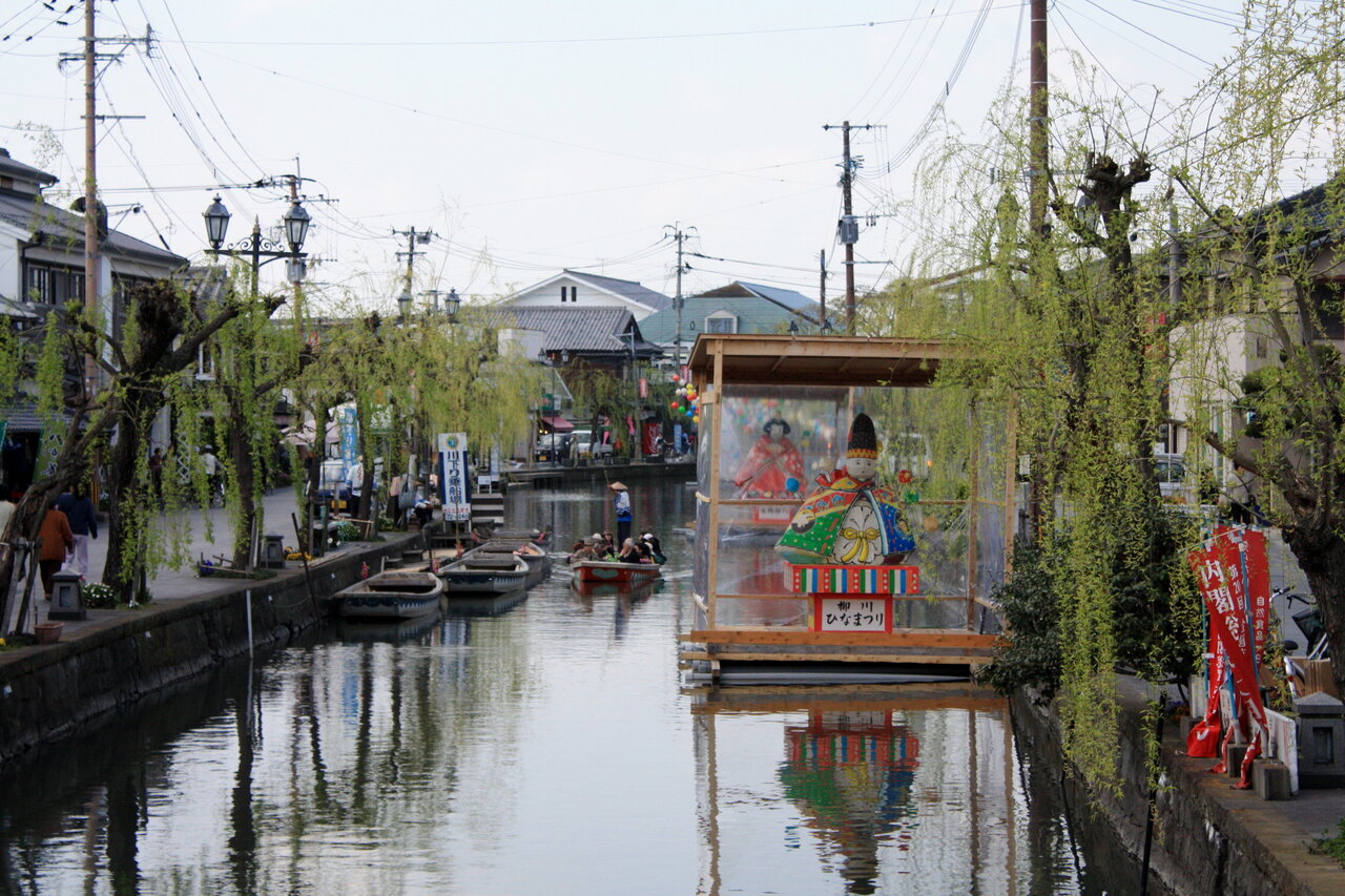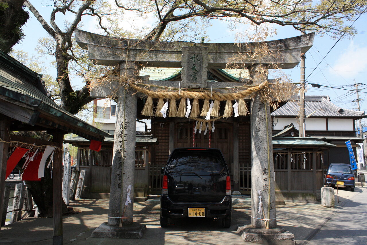 水天宮は道路傍にこじんまりとありました。何故か、軽自動車が鳥居をくぐって水天宮の前に停めてありました。毎年5月3日から5日まで水天宮祭が行われ水天宮の周囲には露店が立ち、堀には6隻の舟がつながる舟舞台が作られ堀を進むそうです。