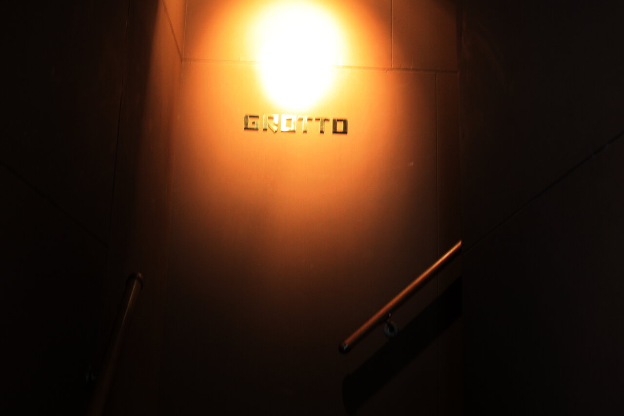 薄暗い階段には「GROTTO 」の文字がスポットライトで照らされていました。