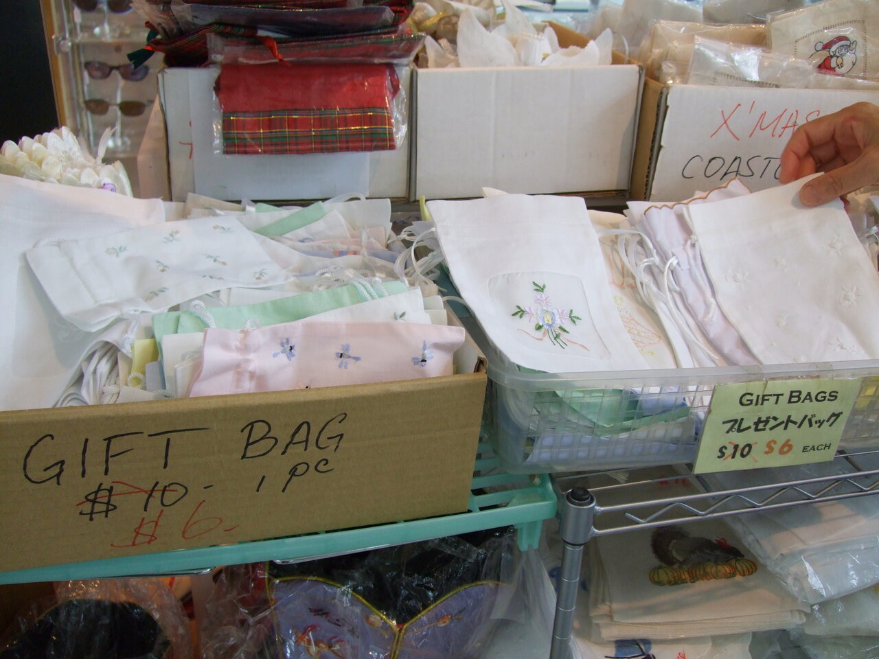 スタンレーマーケットは娘もバスで来たことがあるそうで、教わっていて行きたかったのはレースの店でした。お手ごろ価格できれいに刺繍した巾着袋などがありました。