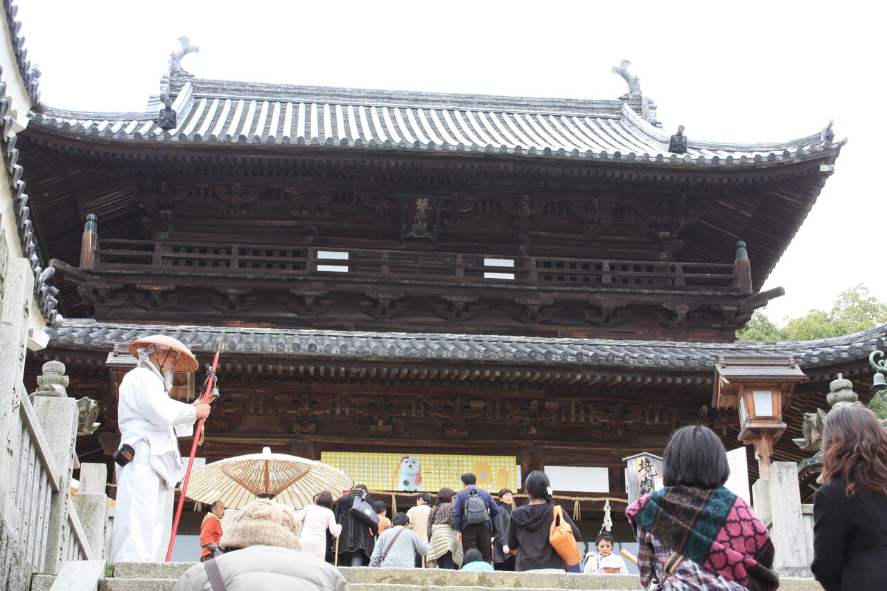 大門は365段目に立つ門です。二層の入母屋造瓦葺きで1650年に初代高松藩主・松平頼重の寄進です。