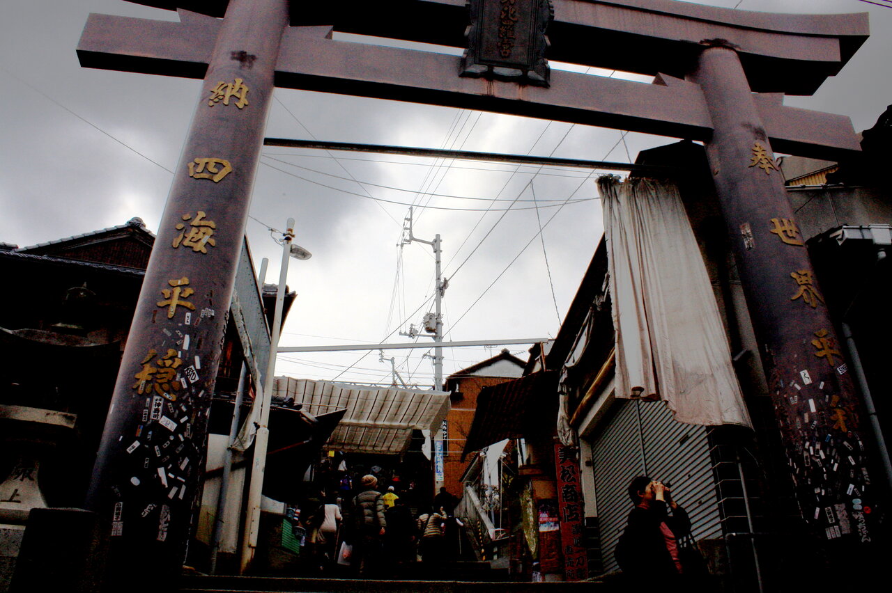 大門が見えてきました。土産物店の並びはここまでです。