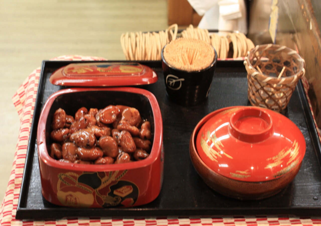 昼食をとった店に戻って来ると香川県の家庭郷土料理「しょうゆ豆」が振る舞われました。