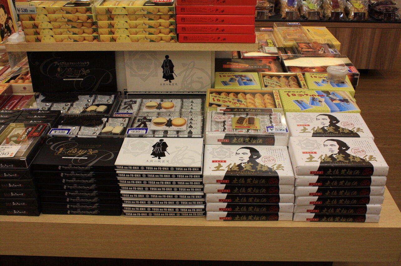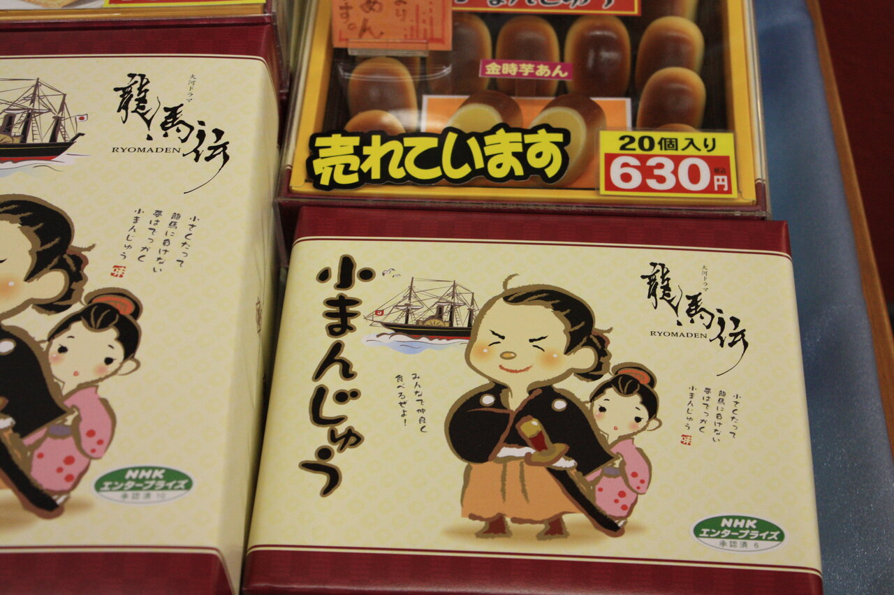 食事の帰りに開いてる店を見ると土産物の菓子は龍馬のオンパレードでした。2010年の大河ドラマは龍馬伝だったのです。