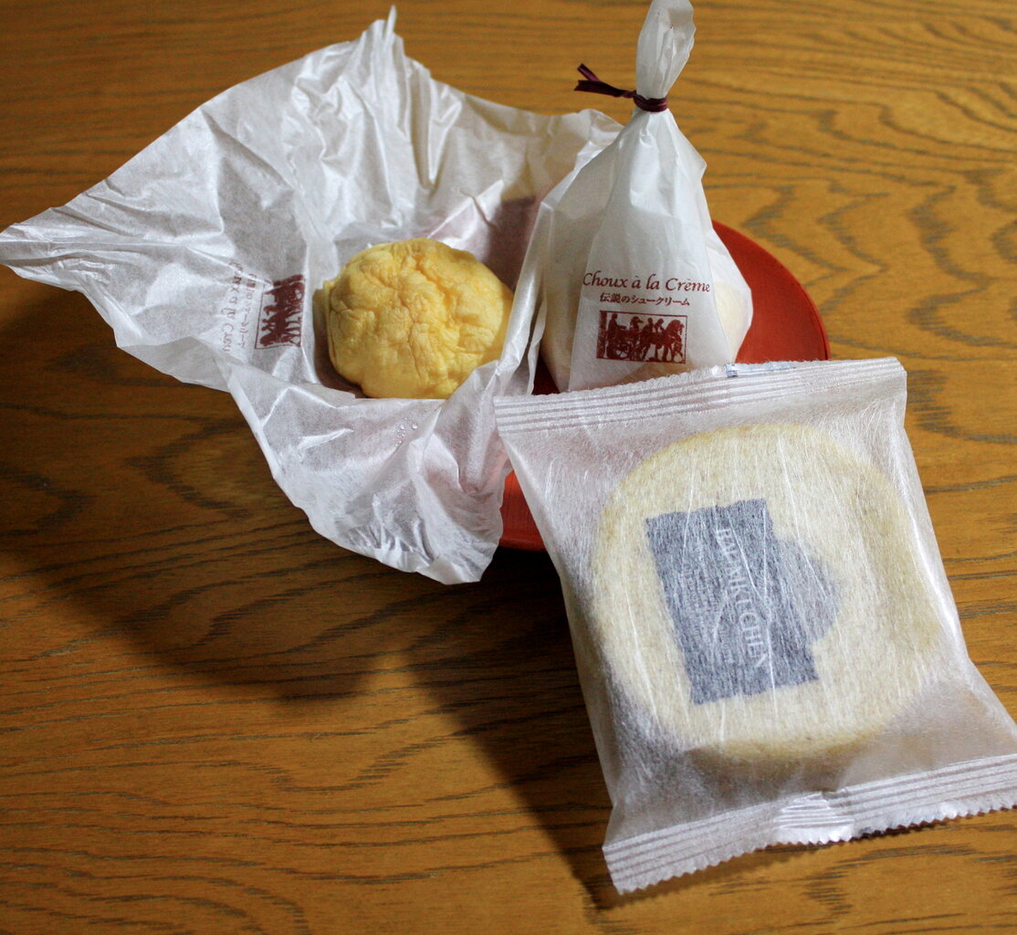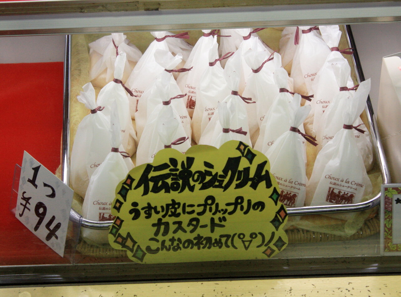 家内がお土産のお菓子を購入している間に「伝説のシュークリーム」を見つけました。どういう伝説なのか店の人に聞くと「九州においしいシュークリームを作る店があり、勤めていたシェフがそこへ修行に行き作り上げたシュークリームということでした。落ちがあり、「そのシェフは帰って来てからすぐ辞めたがレシピが残っていたので復刻出来た」とのことでした。夜のティータイムのため、2個購入しました。
