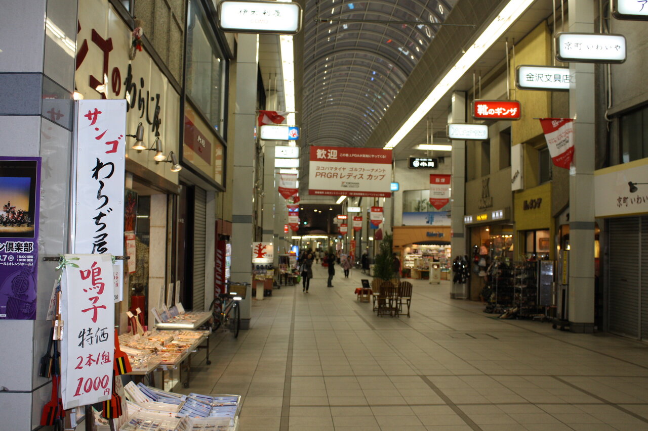 18時を過ぎた京橋商店街アーケードは人が疎らでした。