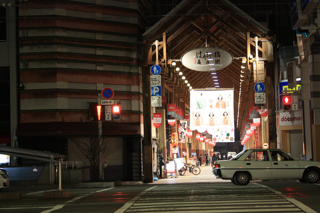 ツアーでは夕食がついていなかったので「はりやま橋」までぶらぶら歩いて食事をすることにしました。