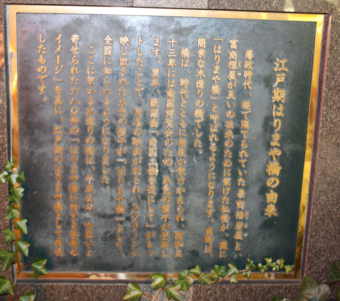 藩政時代、堀で隔てられていた豪商播磨屋と富商柩屋(ひつや)がお互いの往来の為に架けた私