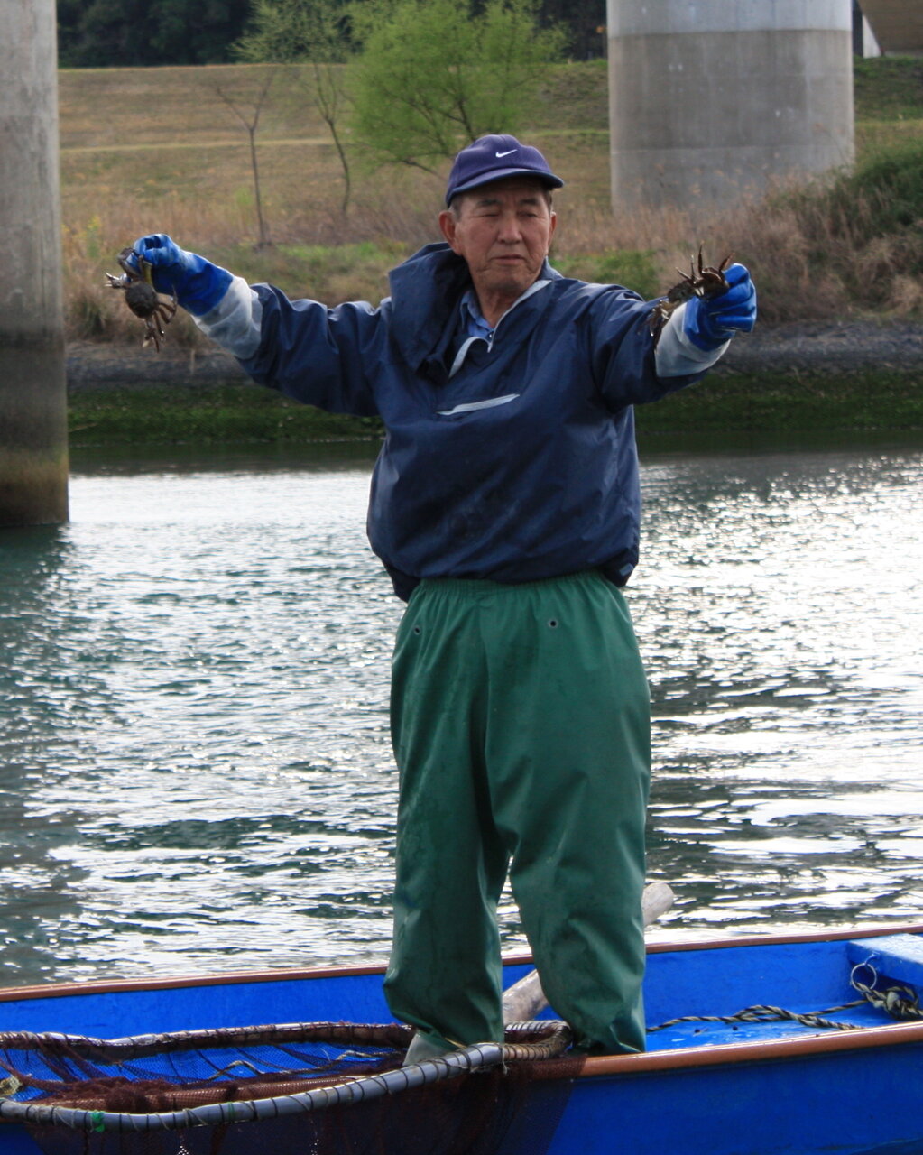 投網で取れたものを見せてくれましたが取れたのは小さなカニでした。モクツガニといい、上海蟹よりもおいしいらしいです。