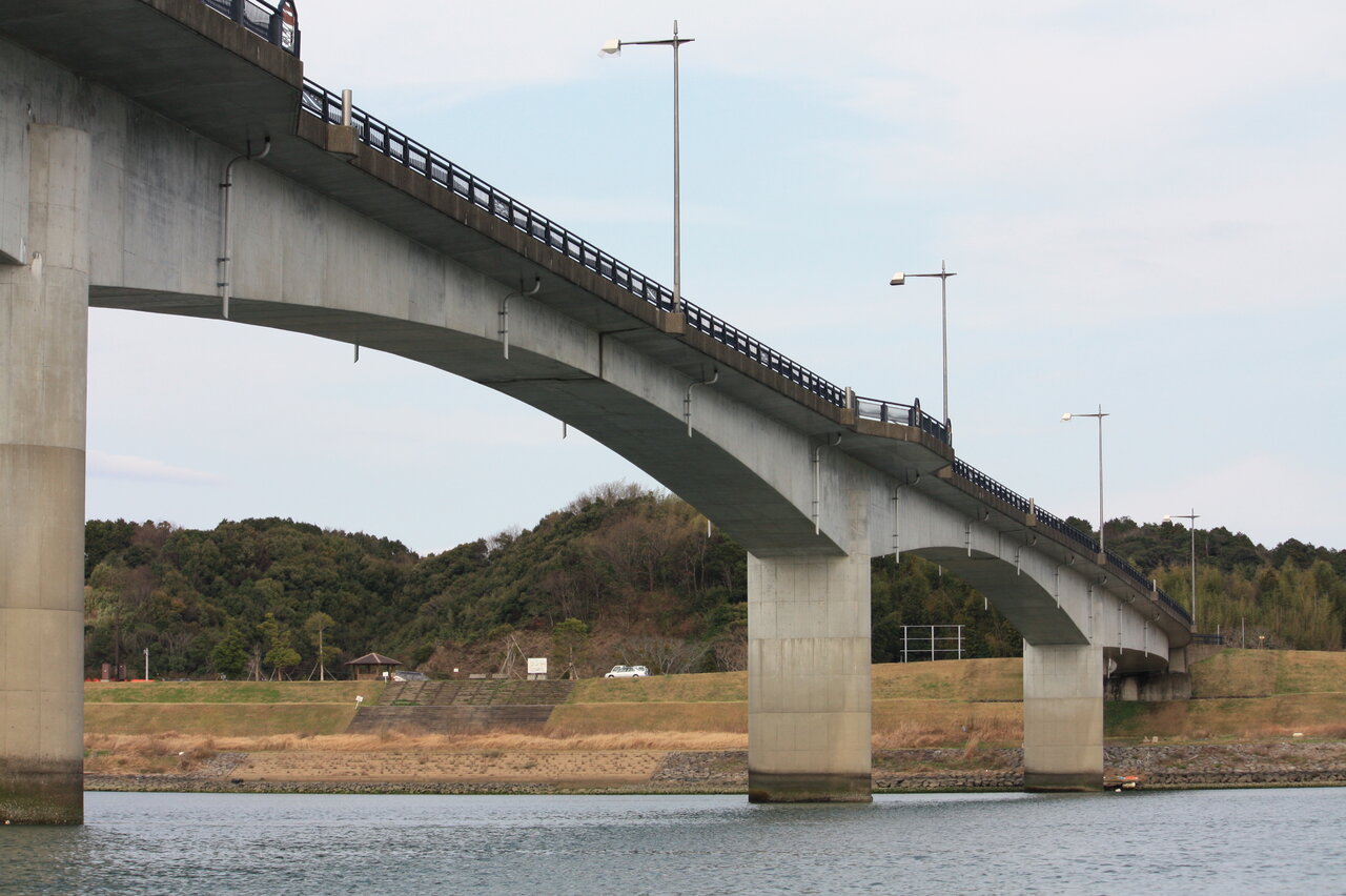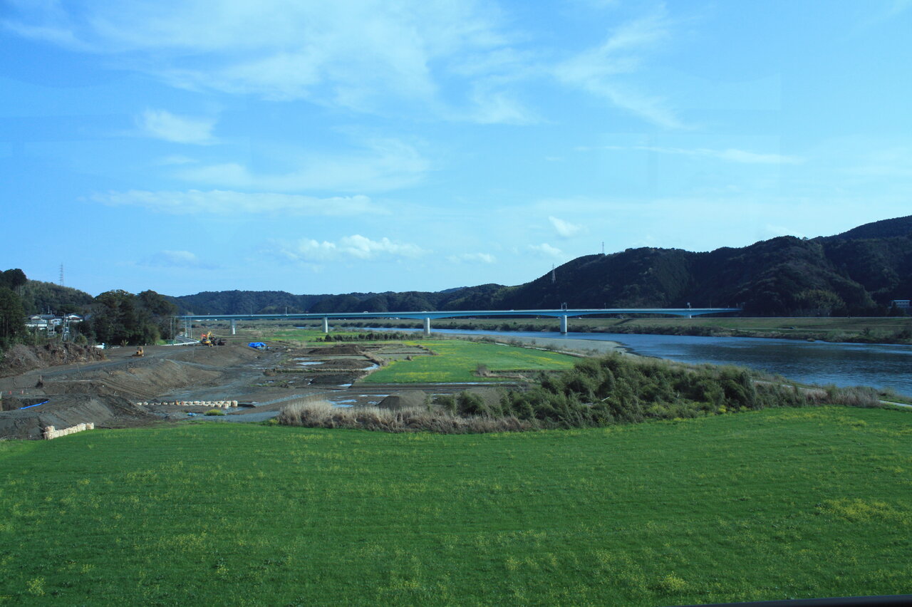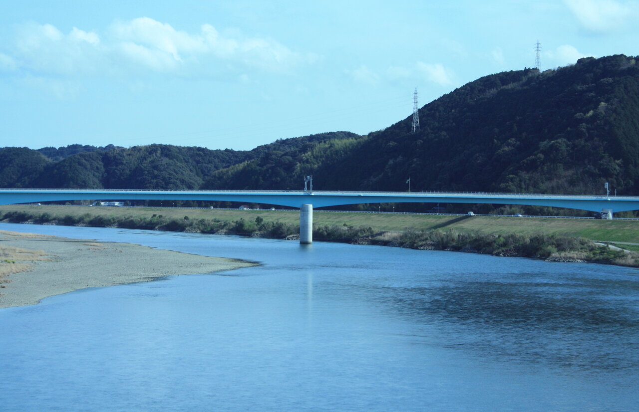 四万十川が見えて来ました。シンプルな橋は四万十橋です。