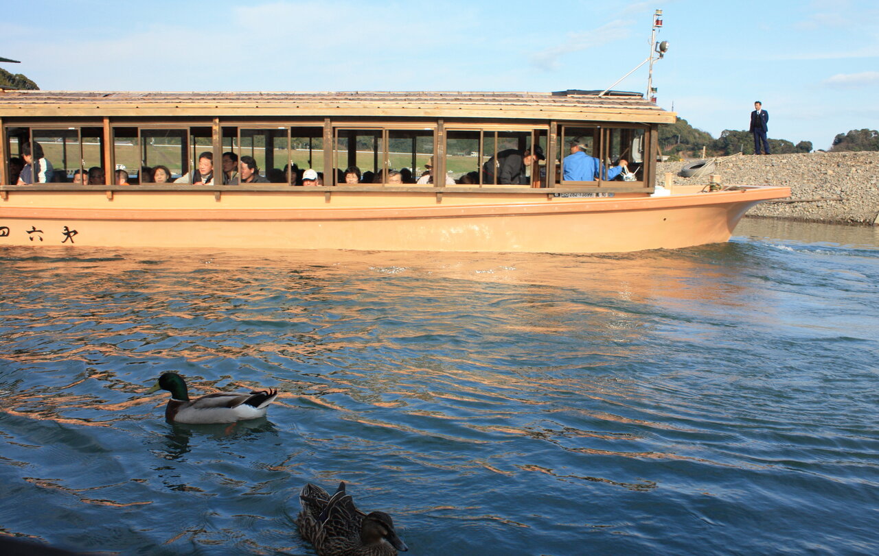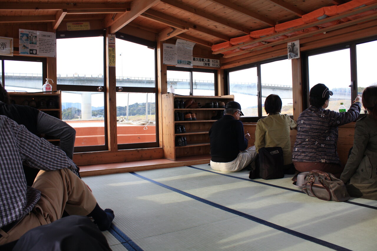 写真のような屋形船に乗り込みました。