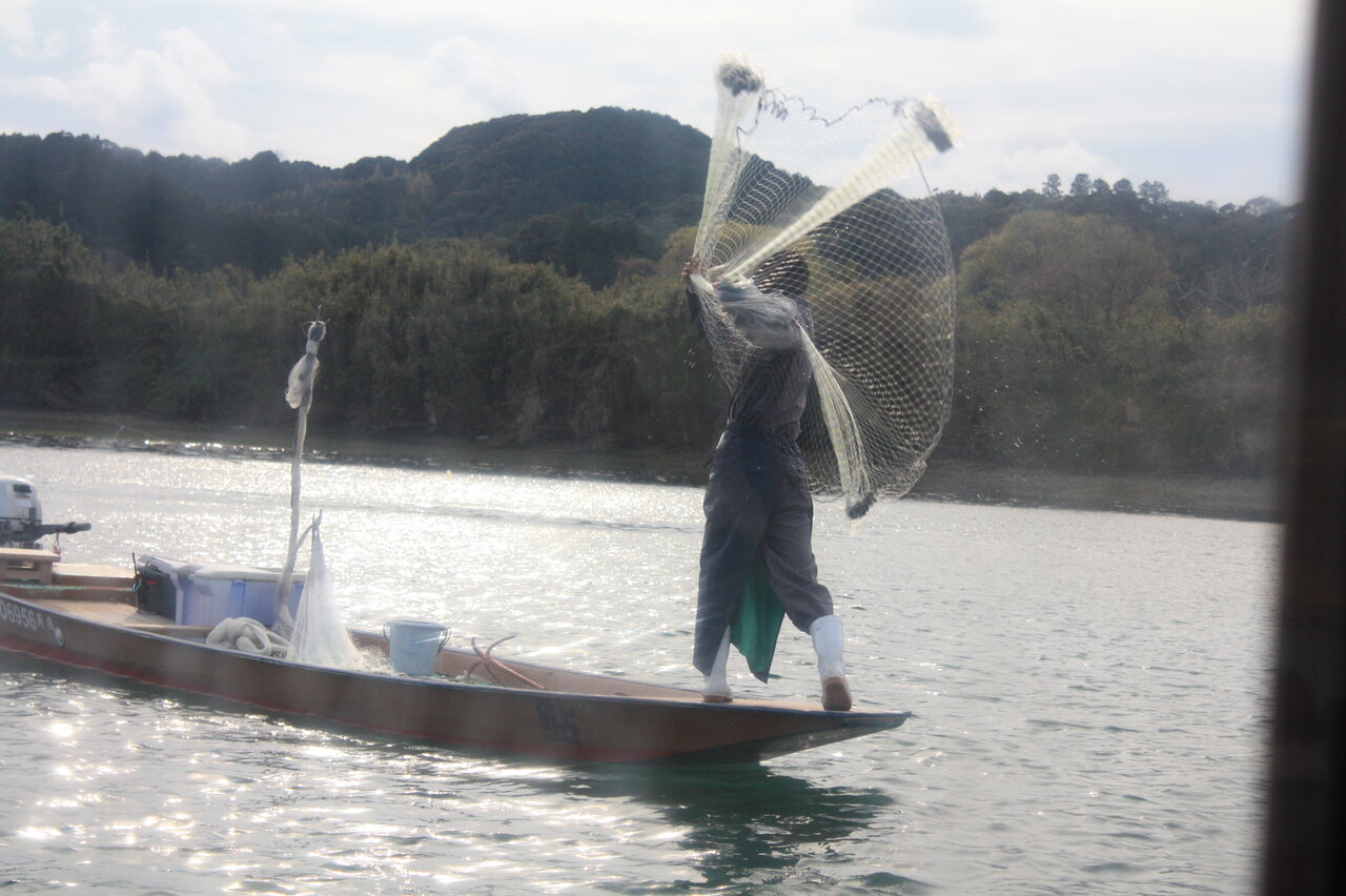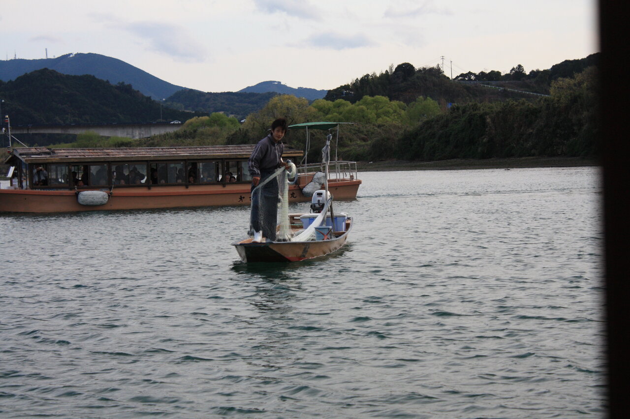 観光船が来ると漁師が土佐打ちという方法で投げる投網漁を披露してくれました。