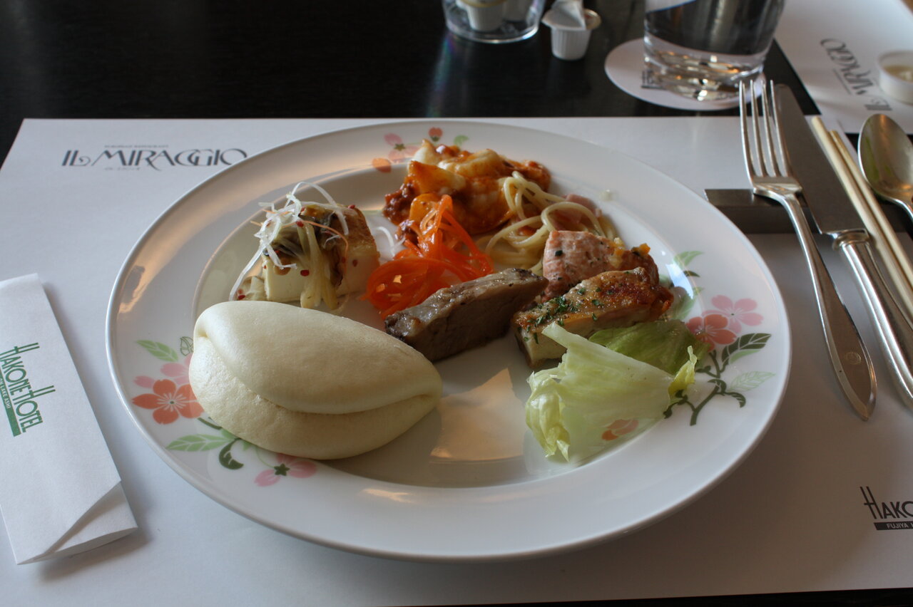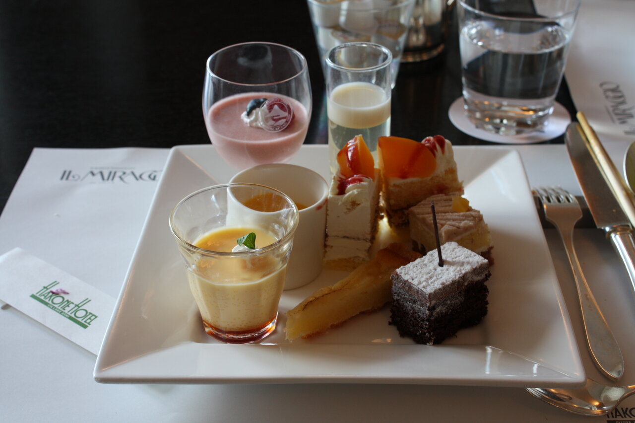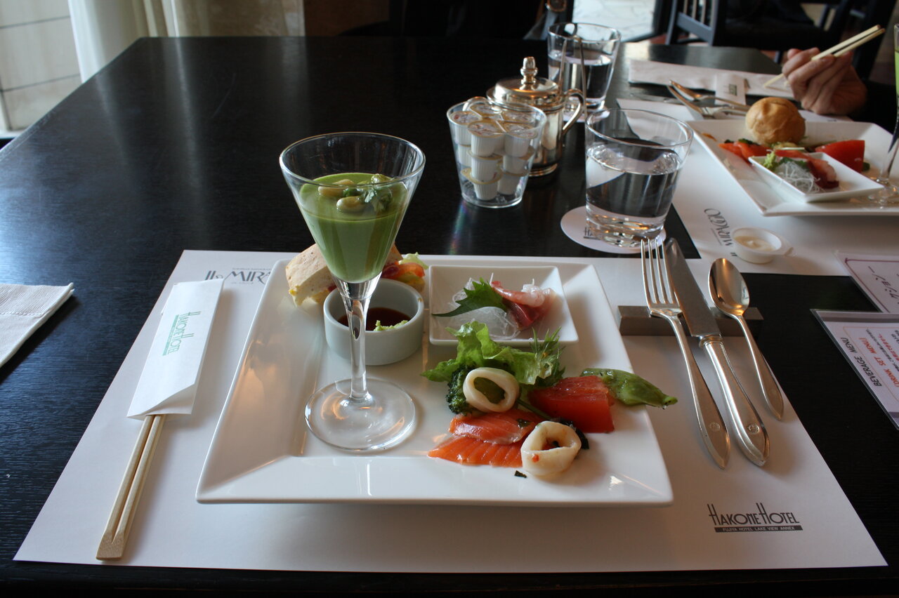 もう一度箱根ホテルに戻りランチにしました。家内が友達から「箱根ホテルのランチバイキングは混むので予約しておいた方が良い」と聞いたとかで、出発前に11 時45 分で予約しました。予約時間に10分遅れて行くと、もう満席で予約しないで来た人が「席が空いたら」と言われていました。