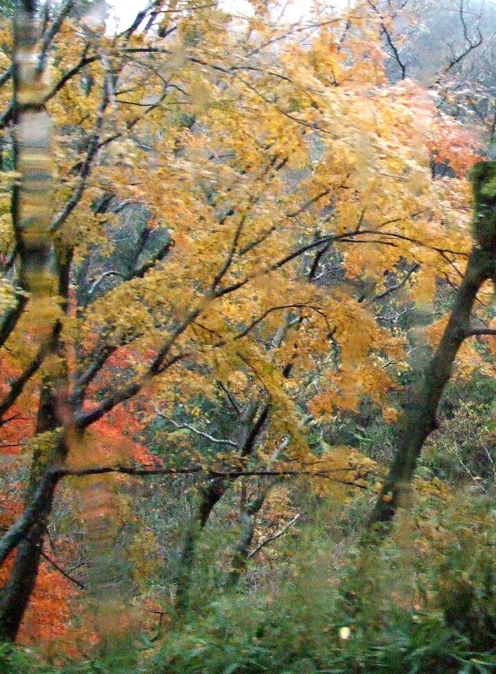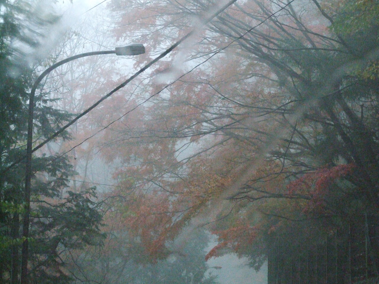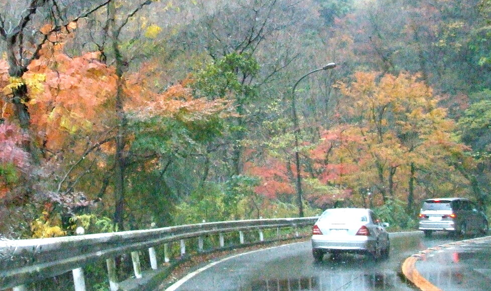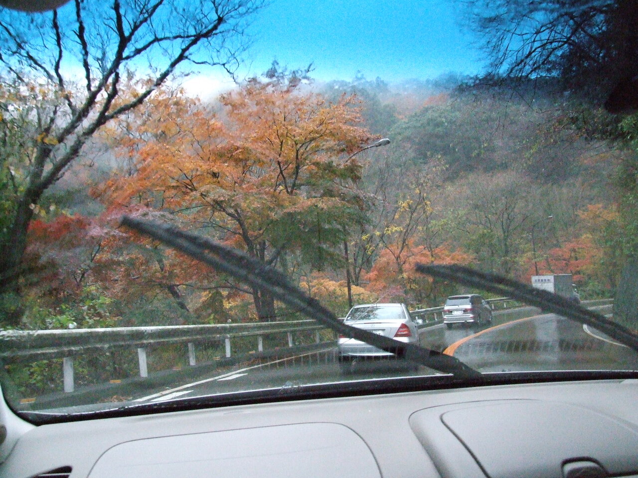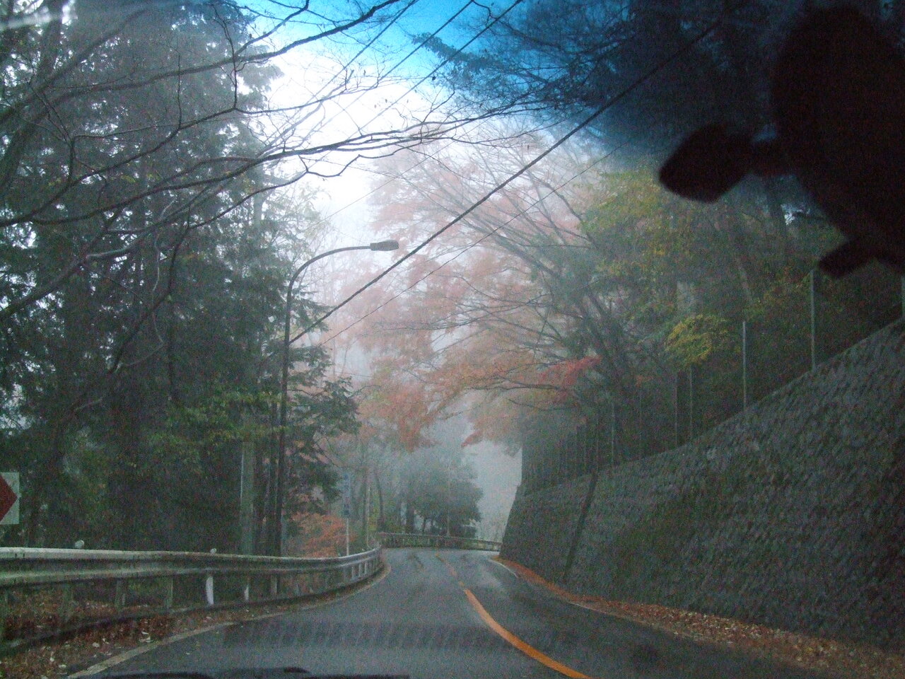 帰りは観光客の車やバスが通常通る一号線(宮下―大平台―湯本―小田原)を走りました。宮下から湯本手前までは紅葉が続いていましたが、霧が発生していました。