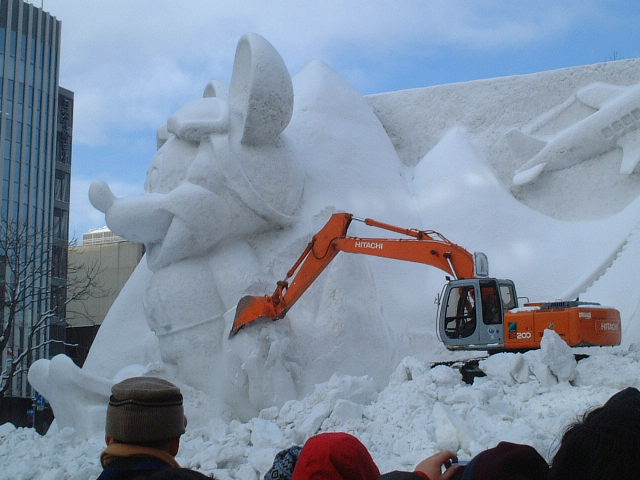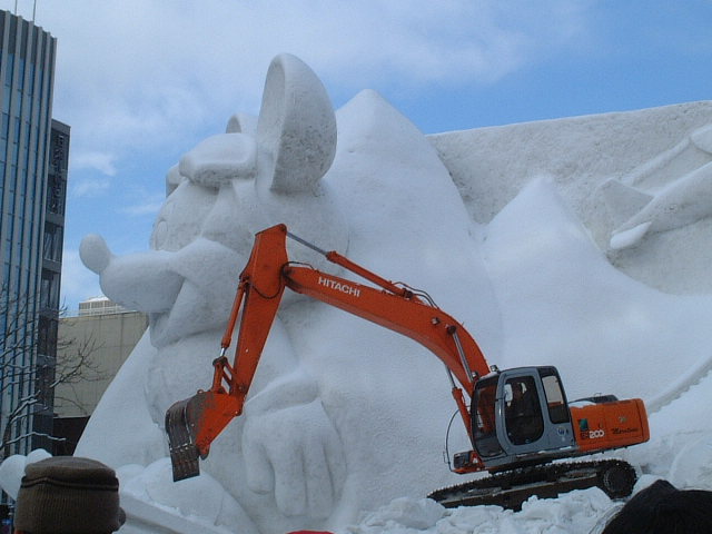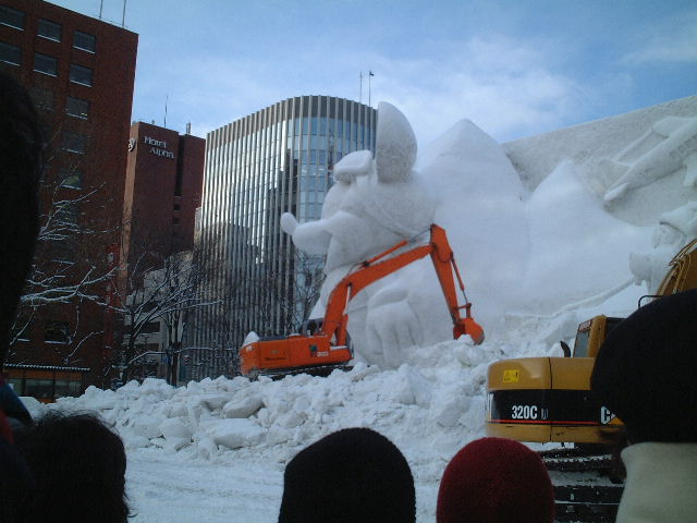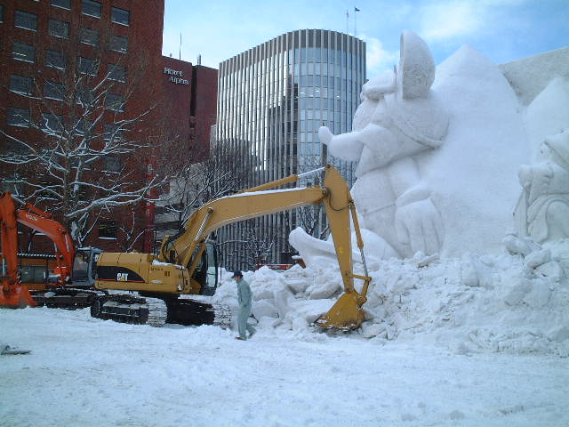 サッポロ雪まつりを見学した翌朝は雪像の解体作業を見ました。