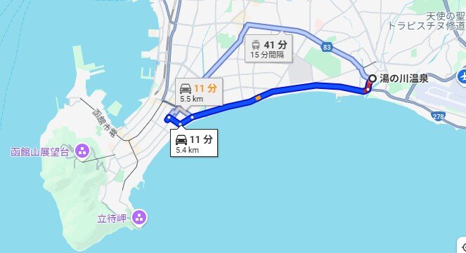 湯の川温泉からバスは海岸線を通り元町へ行きました。