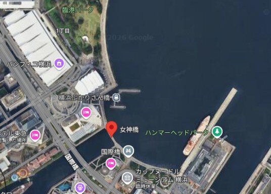 橋の袂にはインターコンチネンタルホテルがあり、その最上階に航海を守る「みちびき」という女神像が設置されています。そこからついた名前の橋です。