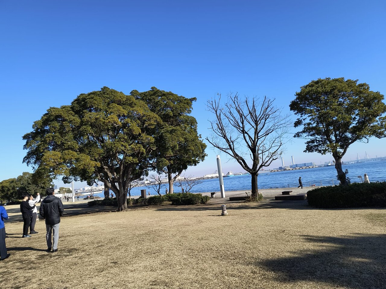ベイブリッジが見え、海上保安庁の船が停泊していました。